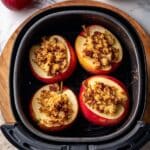 Cook the apples for 15-20 minutes until their flesh is tender and the filling inside is bubbly and caramelized. Keep an eye on them towards the end so they don’t overcook — every air fryer is a little different.