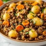 Amish Harvest Casserole is a comforting and hearty baked dish combining tender chicken, sweet sautéed sweet potatoes, peas, and a creamy mushroom sauce, all topped with melted cheddar cheese. Perfect for a cozy family dinner, this casserole offers a delightful blend of savory flavors and wholesome ingredients in an easy-to-make recipe.