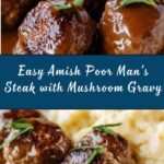 Amish Poor Man’s Steak is a comforting and hearty dish featuring ground beef patties simmered in a creamy mushroom gravy. This recipe involves preparing the beef mixture, pan-frying the patties, and then baking them in a rich mushroom sauce to tender, flavorful perfection. Perfect for a satisfying family meal served over mashed potatoes or egg noodles.