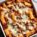 This Baked Rigatoni Pasta recipe is a comforting Italian-inspired dish featuring al dente rigatoni pasta baked in a rich, homemade tomato sauce layered with creamy ricotta, melted mozzarella, and Parmesan cheese. Perfectly seasoned with an Italian herb blend and garlic, this hearty casserole is baked until bubbly and golden brown, making it an ideal family dinner or gathering meal.