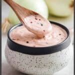 This Blooming Onion Dipping Sauce Recipe keeps beautifully in an airtight container in the refrigerator for up to a week. Just give it a quick stir before serving again to refresh the texture.