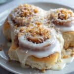 Once the rolls come out of the oven, drizzle the warm toffee sauce over them immediately so it seeps into every swirl. Follow with a gentle drizzle of the vanilla glaze for an extra layer of sweetness that’s simply irresistible. Serve these rolls warm and watch everyone’s eyes light up with delight!