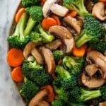 Reheat your Broccoli, Carrot, and Mushroom Stir-Fry Recipe in a skillet over medium heat, adding a splash of water or broth to refresh the vegetables if needed. Microwave reheating is okay but can lead to a softer texture.