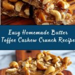 Butter Toffee Cashew Crunch is a delightful homemade candy featuring a rich buttery toffee base mixed with crunchy salted cashews. This crispy treat combines the deep caramel flavor of hard crack stage toffee with the nutty saltiness of cashews for a perfect sweet and salty snack.
