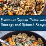 This Butternut Squash Pasta with Sausage and Spinach is a hearty and flavorful dish featuring roasted butternut squash, Italian sausage, sautéed spinach, and creamy Parmesan sauce. The roasted squash adds a natural sweetness and creaminess, while the sausage provides a savory depth. Perfectly cooked pasta is tossed in a luscious sauce enhanced with sage and red pepper flakes for a comforting, satisfying meal that’s great for fall or anytime you crave a rich, vegetable-forward pasta.