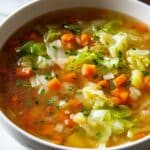 A hearty and healthy vegan cabbage soup made with fresh vegetables simmered in a flavorful broth. This easy-to-make, low-calorie soup is perfect for detox, weight loss, or a light comforting meal, featuring vibrant cabbage, carrots, zucchini, and a touch of lemon juice for brightness.