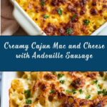 A flavorful Cajun Mac and Cheese combining creamy cheddar cheese sauce with spicy andouille sausage and sautéed red peppers, baked to golden perfection with a smoky paprika topping. This hearty dish brings a bold twist to classic comfort food with Cajun seasoning.