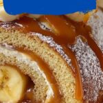 A delightful Caramel Banana Cake Roll featuring a soft, moist banana-flavored sponge cake rolled with a creamy caramel-infused cream cheese filling, perfect for an indulgent dessert treat that’s both visually impressive and delicious.