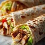 These Cheesy Chicken Garlic Wraps are quick, flavorful, and perfect for a satisfying meal. Tender shredded chicken is sautéed with garlic and spices, then combined with a creamy garlic sauce and melted cheese inside warm flour tortillas. Toasted to golden perfection, these wraps make a delicious, gooey comfort food that can be ready in just 20 minutes.