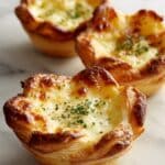 Cheesy Garlic Cruffins are a delightful hybrid of croissants and muffins, featuring flaky puff pastry layered with garlic butter and gooey melted cheese. Perfect as a savory breakfast treat or a flavorful snack, these cruffins combine buttery richness with a garlicky kick and melted mozzarella, enhanced by fresh parsley. Easy to make with store-bought puff pastry, they are baked until golden and irresistibly cheesy.
