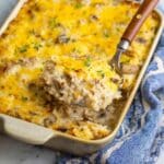 12. Transfer to Baking Dish: Pour the mixture into a lightly greased 9 x 13-inch casserole dish. Top evenly with the remaining cheddar cheese.