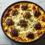 This Cheesy Potato Meatball Casserole combines juicy browned meatballs with creamy mashed potatoes and a rich blend of cheddar and mozzarella cheeses, baked to bubbly perfection. A comforting, hearty dish perfect for family dinners that bring together savory flavors and cheesy goodness in a single casserole.