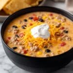 You can absolutely freeze Cheesy Taco Soup Recipe for later meals. To do this, store it in freezer-safe containers or heavy-duty plastic bags, leaving some room for expansion. It freezes well for up to 2 months. When freezing, it’s best to add the Velveeta cheese fresh when reheating, as the texture can change after thawing.
