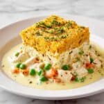 This Chicken Cobbler Recipe is a comforting and hearty casserole featuring shredded chicken and mixed vegetables topped with a fluffy biscuit-like batter and baked to golden perfection. The creamy chicken broth and soup mixture keeps the filling moist and flavorful, making it an easy weeknight meal that’s both satisfying and delicious.