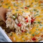 A savory and comforting Chicken Fajita Casserole featuring tender shredded chicken, instant rice, a blend of spices, creamy soup, and melted Mexican cheese, all baked to perfection for an easy and satisfying meal.