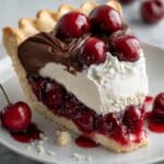 This Chocolate Cherry Pie Bliss features a rich chocolate cookie crust filled with a luscious blend of dark chocolate, cream cheese, and cherry pie filling. Topped with a vibrant layer of cherry pie filling and optional chocolate curls, this dessert combines the deep flavors of chocolate and sweet-tart cherries for an irresistible treat perfect for special occasions or any dessert table.