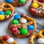 Christmas Pretzel Hugs are a delightful and easy-to-make holiday treat featuring crunchy pretzel snaps topped with soft Hershey’s Hugs chocolates and festive Christmas-themed M&M’s. Perfect for gifting or serving at holiday parties, these bite-sized snacks combine sweet and salty flavors with a festive look.