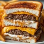 This Classic Patty Melt recipe features juicy seasoned ground beef patties layered with cheddar and provolone cheeses, sandwiched between buttery rye bread and toasted to golden perfection. Enhanced with a tangy homemade sauce of mayonnaise, ketchup, sweet relish, and sugar, these comforting sandwiches are a delicious twist on traditional burgers, perfect for a hearty lunch or dinner.