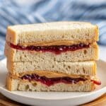 A timeless and simple Classic Peanut Butter and Jelly Sandwich made quickly with creamy or crunchy peanut butter and your favorite jelly or jam. Perfect for a quick snack or lunch, this sandwich combines the rich, nutty flavor of peanut butter with the sweet, fruity taste of jelly for a satisfying treat anyone can enjoy.
