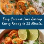 A vibrant and creamy Coconut Lime Shrimp Curry featuring succulent shrimp simmered in a flavorful coconut milk and red curry paste sauce, infused with fragrant spices and a zesty lime finish. This quick and easy recipe is perfect for a comforting weeknight dinner served over rice or noodles.