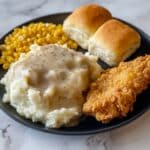 - Serve: Plate the fried chicken and generously spoon the creamy gravy over the top. Serve hot for a classic, comforting meal.