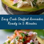 This Crab Stuffed Avocados recipe is a quick, fresh, and nutritious appetizer or light meal. Creamy avocado halves are filled with a zesty crab meat salad, flavored with lime juice, red onion, cilantro, and cherry tomatoes. Perfect for warm weather or when you want a healthy dish ready in minutes.