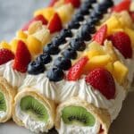 This delightful Cheesecake and Fruit Salad combines the creamy richness of a classic cheesecake with the fresh, vibrant flavors of mixed fruits. Perfect as a light dessert or refreshing treat, this recipe features a simple graham cracker crust topped with a smooth cream cheese filling and a medley of strawberries, blueberries, and kiwi to add a burst of color and natural sweetness.