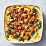 This Chicken and Spinach Casserole with Cream Cheese is a creamy, flavorful dish combining tender seared chicken breasts, fresh spinach, and a rich cream cheese mixture topped with melted mozzarella cheese. It’s baked to bubbly perfection and makes a comforting meal perfect for weeknights or gatherings.
