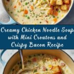 The Creamy Chicken Noodle Soup with Mini Croutons and Crispy Bacon Recipe is one of those irresistible dishes that comforts, nourishes, and brings joy with every spoonful. Whether you want to cozy up after a busy day or impress loved ones with a homemade classic, this recipe will deliver warmth and satisfaction like no other. I’m excited for you to try it and make it a staple in your kitchen rotation—you won’t regret it!