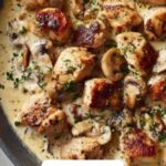 - Sauté Vegetables: In the same skillet, reduce the heat to medium and add unsalted butter. Sauté the finely chopped onion for 2–3 minutes until softened. Then add the minced garlic and sliced mushrooms, cooking for 5–6 minutes until the mushrooms are browned and tender.