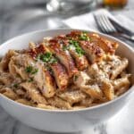 This Creamy Garlic Chicken Pasta is a simple, flavorful dish combining tender chicken breast, aromatic garlic, and a rich creamy sauce. Perfect for a quick weeknight dinner, it features pasta tossed in a luscious sauce made with heavy cream, Parmesan, and fresh parsley, delivering comforting Italian-inspired flavors in just 25 minutes.