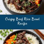 This Crispy Beef Rice Bowl is a quick and flavorful meal that combines tender, crispy beef with fluffy rice and vibrant vegetables for a satisfying and delicious dinner. It’s easy to make, versatile, and perfect for weeknight dinners or any time you want a hearty, tasty bowl. Customize it by substituting beef with chicken or tofu, adding your favorite vegetables, and topping with soy sauce, sesame seeds, or a fried egg for extra flavor.