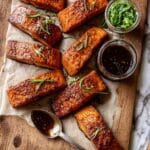 These Crispy Hot Honey Salmon Tenders are a delicious and easy-to-make seafood dish featuring tender salmon strips baked to a perfect crisp and coated with a sweet and spicy hot honey sauce. Ready in just 25 minutes, this dish combines savory seasoning with a fiery honey glaze accented by smoked paprika, cayenne, and chipotle. Serve garnished with fresh herbs for a flavorful and impressive meal that’s perfect for weeknights or gatherings.
