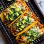 The best way to enjoy these tacos is fresh from the pan, paired with toppings that balance out the spicy richness. A dollop of sour cream cools the heat while adding creamy texture. Guacamole provides fresh, buttery flavor and a bit of herbal brightness, and salsa adds vibrant acidity and a refreshing tang. Feel free to sprinkle some chopped cilantro or a squeeze of lime for extra zing.