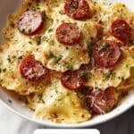 To warm up leftovers, the best way is to reheat gently in a microwave or in the oven at 350°F until heated through. Stir halfway through reheating for even warmth and to bring back that creamy texture. Just be careful not to overcook, as the pierogies can become overly soft.