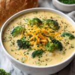 For a fun twist, serve the soup in hollowed-out bread bowls for an edible container that’s just as delicious as the soup itself. You can also offer a variety of toppings buffet-style for guests or family to customize their bowls. Another idea is to layer the soup in clear glass mugs, showcasing the beautiful layers of cheddar and broccoli for an inviting presentation.