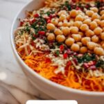 Sprinkle chopped peanuts, fresh cilantro, and sesame seeds right on top of the salad. These final layers of crunch and fresh herbal aroma will elevate your Crunchy Thai Chickpea Salad Recipe to that wow-factor level. Serve immediately for the crispiest experience, or let it rest briefly to let the flavors mingle.