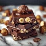 Ferrero Rocher Tiffin is a decadent no-bake dessert combining rich milk chocolate, creamy Nutella, crunchy digestive biscuits, and chopped hazelnuts. This layered treat is topped with whole Ferrero Rocher halves and chocolate, making it a perfect indulgent snack or party treat that sets in the fridge.