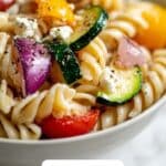Freezing this pasta isn’t recommended because the texture of the feta and roasted vegetables can change significantly. For best results, enjoy freshly made or refrigerated leftovers.