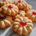 This 4-Ingredient Christmas Shortbread Cookies recipe is a simple and festive treat perfect for the holiday season. Made with just butter, powdered sugar, flour, and maraschino cherries, these classic shortbread cookies are buttery, tender, and have a delightful cherry topping, making them a charming addition to any cookie platter.