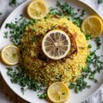 This Fragrant Spiced Mediterranean Lemon Rice is a vibrant and aromatic side dish bursting with warm spices, fresh lemon zest, and bright parsley. Perfectly cooked basmati rice is infused with cumin, coriander, turmeric, and cinnamon, then combined with peas for a colorful, flavorful addition to any Mediterranean or Middle Eastern meal.