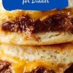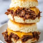 - Serve: Place the biscuit tops back on each sandwich. Serve warm with the au jus from the Crock-Pot on the side for dipping, offering a deliciously savory and juicy complement to the cheesy beef biscuits.