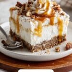Grab a 9×13-inch baking dish and spread half of your toasted cornflake mixture evenly across the bottom. It forms a crunchy base that adds contrast to the creamy layers to come. Next, scoop the vanilla ice cream over the cornflake layer, spreading it smoothly with a knife or offset spatula to create an even layer without breaking the crust underneath. This is the luscious center that makes the casserole feel like a frozen delight.
