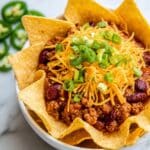 You can freeze the chili mixture (without the chips and cheese) in a freezer-safe container for up to 3 months. Thaw overnight in the fridge before reheating gently on the stove. Freeze in portions for convenient future meals and always add the Fritos and fresh toppings at serving time for the perfect crunch and flavor.