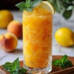 This Frozen Peach Lemonade is the perfect refreshing summer drink, combining the natural sweetness of frozen peaches with the tangy brightness of fresh lemon juice. Blended into a smooth, slushy texture, this lemonade is easy to make, customizable to your preferred sweetness level, and beautifully garnished with mint and lemon slices for an extra zingy presentation.