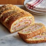 Garbage Bread freezes beautifully either before or after baking. To freeze before baking, wrap the assembled but unbaked roll tightly in plastic wrap and foil, then thaw overnight in the fridge before baking as usual. If freezing cooked bread, slice it first for easy reheating and portion control.