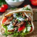 This Greek Chicken Gyros recipe features tender marinated chicken breast cooked to golden perfection and wrapped in warm pita bread with fresh vegetables, crumbled feta, and a creamy homemade tzatziki sauce. Ready in just 30 minutes, it’s a flavorful and satisfying Mediterranean-inspired meal perfect for quick lunches or casual dinners.