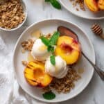 - Assemble Sundaes: Place one or two peach halves in a serving bowl, add a scoop of vanilla ice cream on top, drizzle with caramel sauce or honey, sprinkle with toasted nuts, and finish with whipped cream and a sprig of fresh mint if desired.