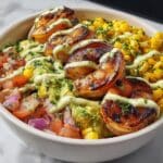 This vibrant Grilled Shrimp Bowl features succulent shrimp seasoned with a smoky spice blend, paired with a refreshing avocado corn salsa and a zesty creamy garlic sauce. Ready in just 25 minutes, it’s a perfect balanced meal that’s flavorful, nutritious, and easy to prepare.