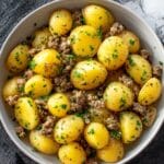 This Ground Beef and Potatoes Casserole is a comforting and hearty dish featuring layers of tender sliced potatoes, savory sautéed ground beef, and melted cheddar cheese baked to perfection. It combines the rich flavors of browned beef and aromatic garlic and onions with creamy potatoes in a simple but satisfying casserole that’s perfect for family dinners.